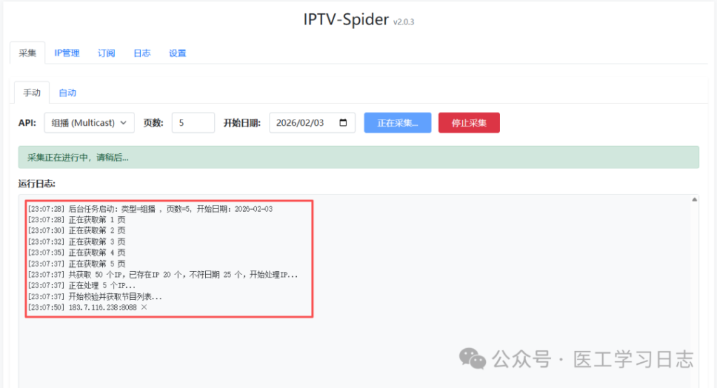 IPTV工具, 飞牛NASfnNAS:IPTV-Spider v2.0.3.fpk 更新:速度提升 + IP 排序优化 + 日志管理 cqshushu / 2026年2月5日 昨天发布的v2.0.2 有点小bug,因