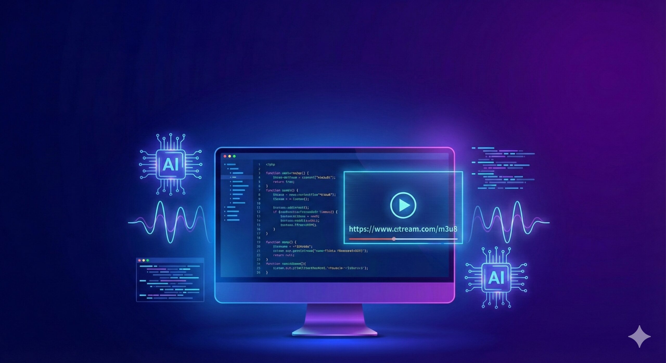 <source src="..."> 中的 m3u8 链接。本人平时写代码喜欢用 Gemini 或者 元宝(DeepSeek)。今天我们就把需求投喂给 元宝,让它帮我们要写这个 PHP 脚本。